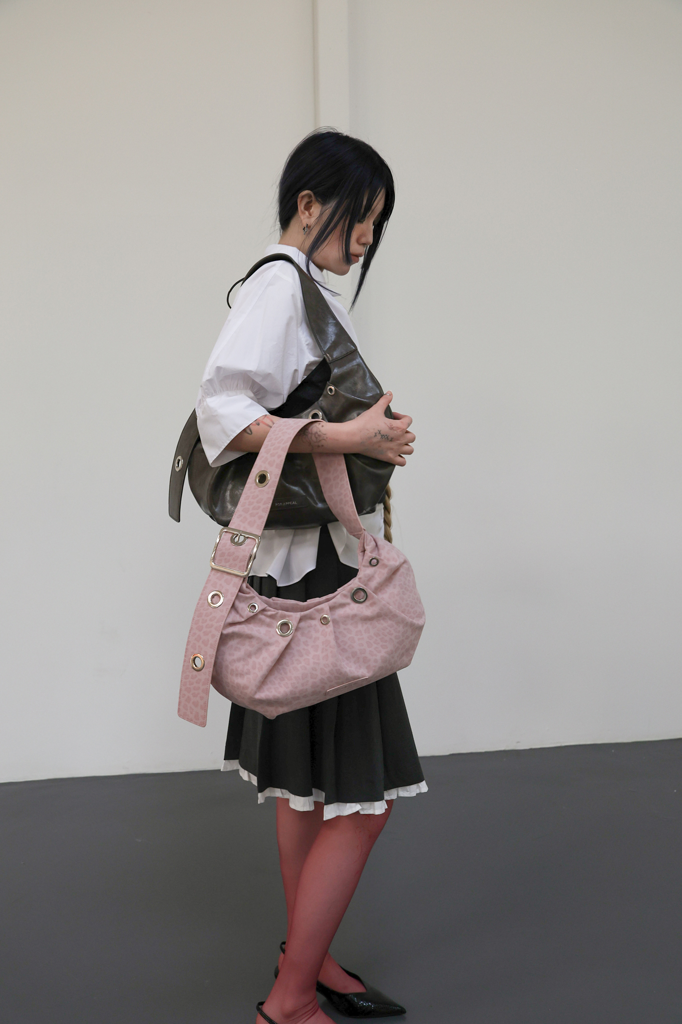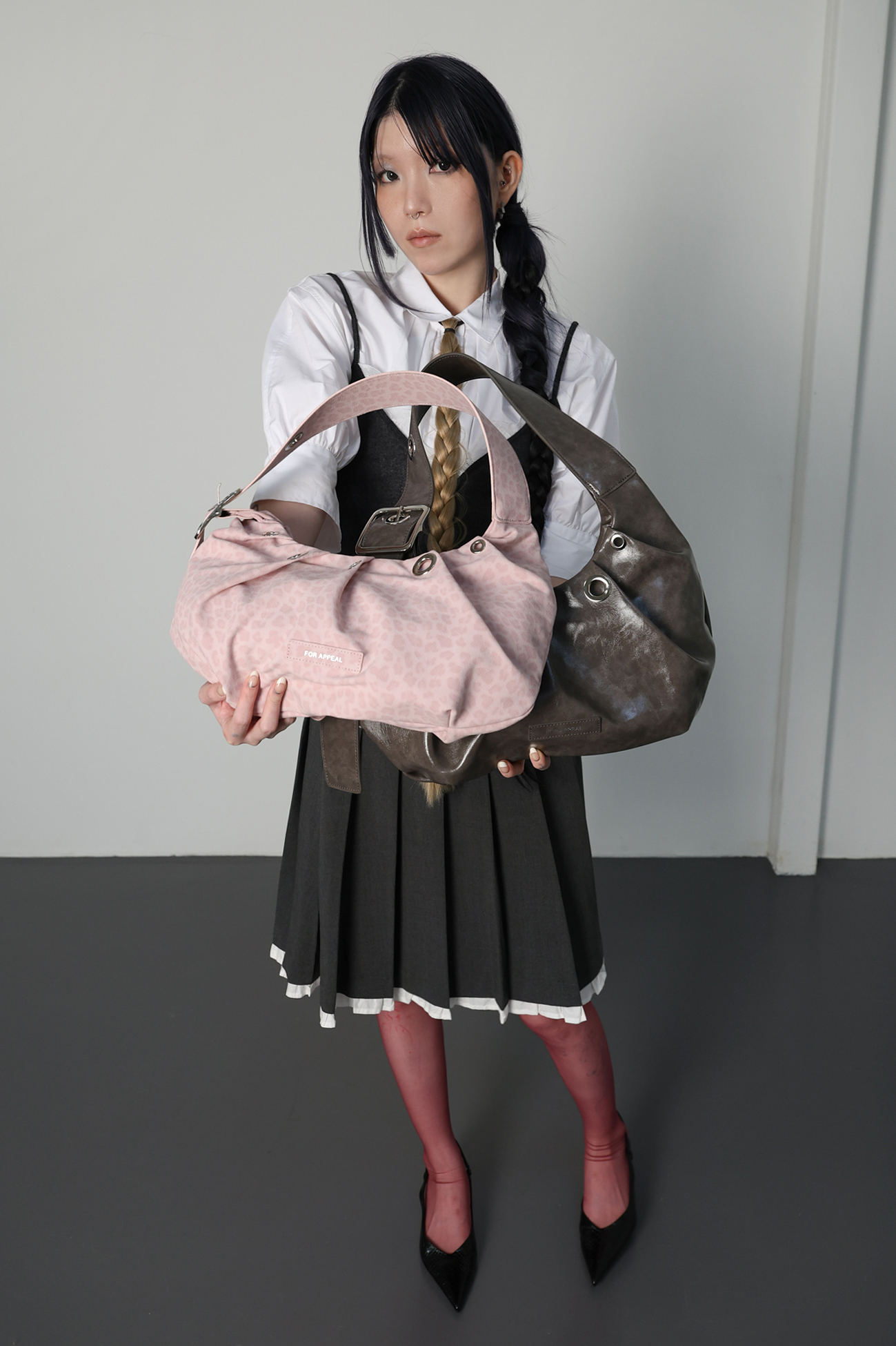 주름 디테일로 가방 쉐입에